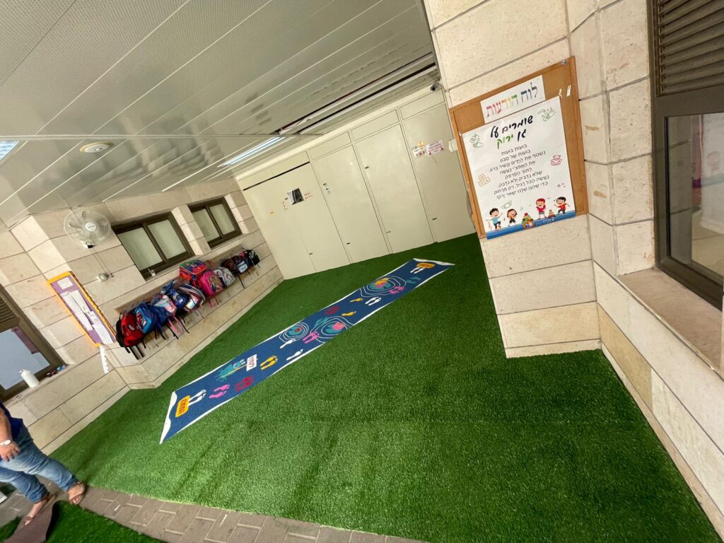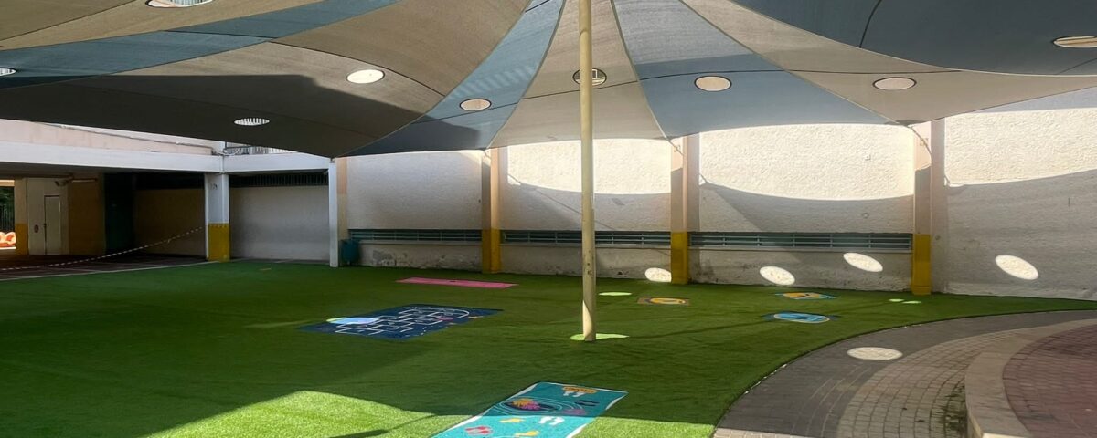 התקנת משחקי רצפה ודשא סינטטי בחצר בית ספר