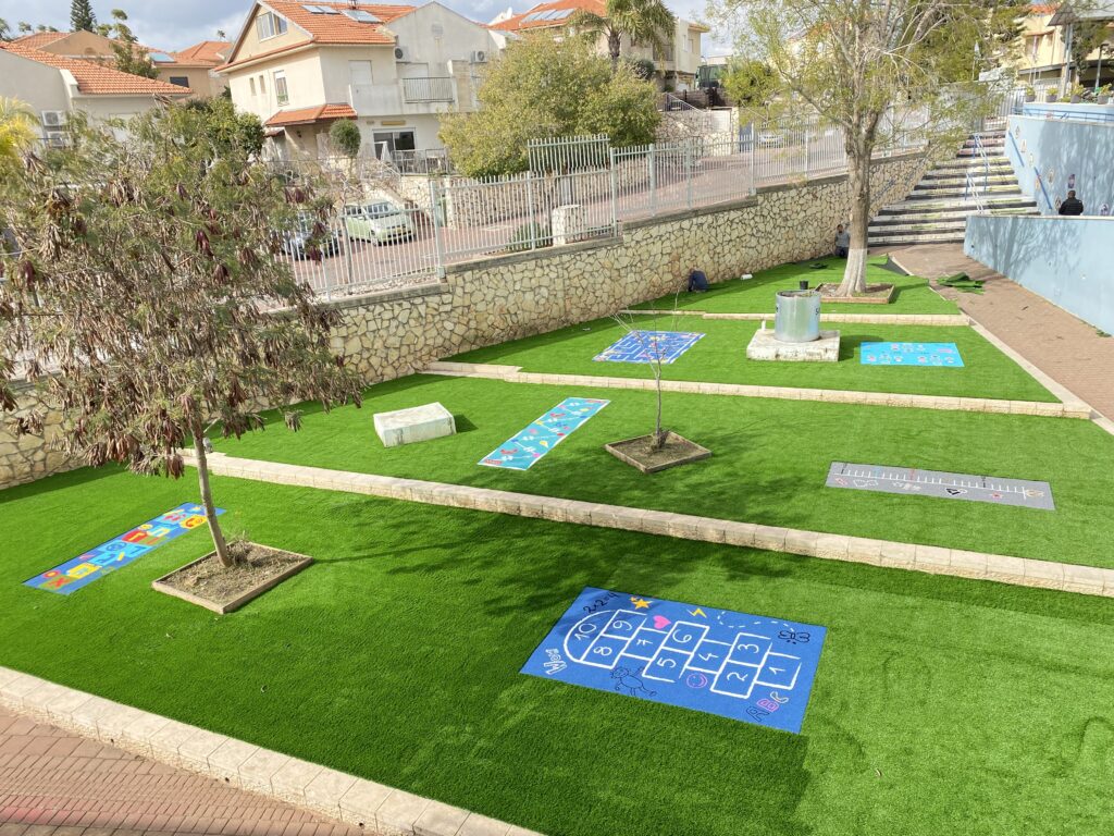 התקנת משחקי רצפה ודשא סינטטי בחצרות גני ילדים ובתי ספר